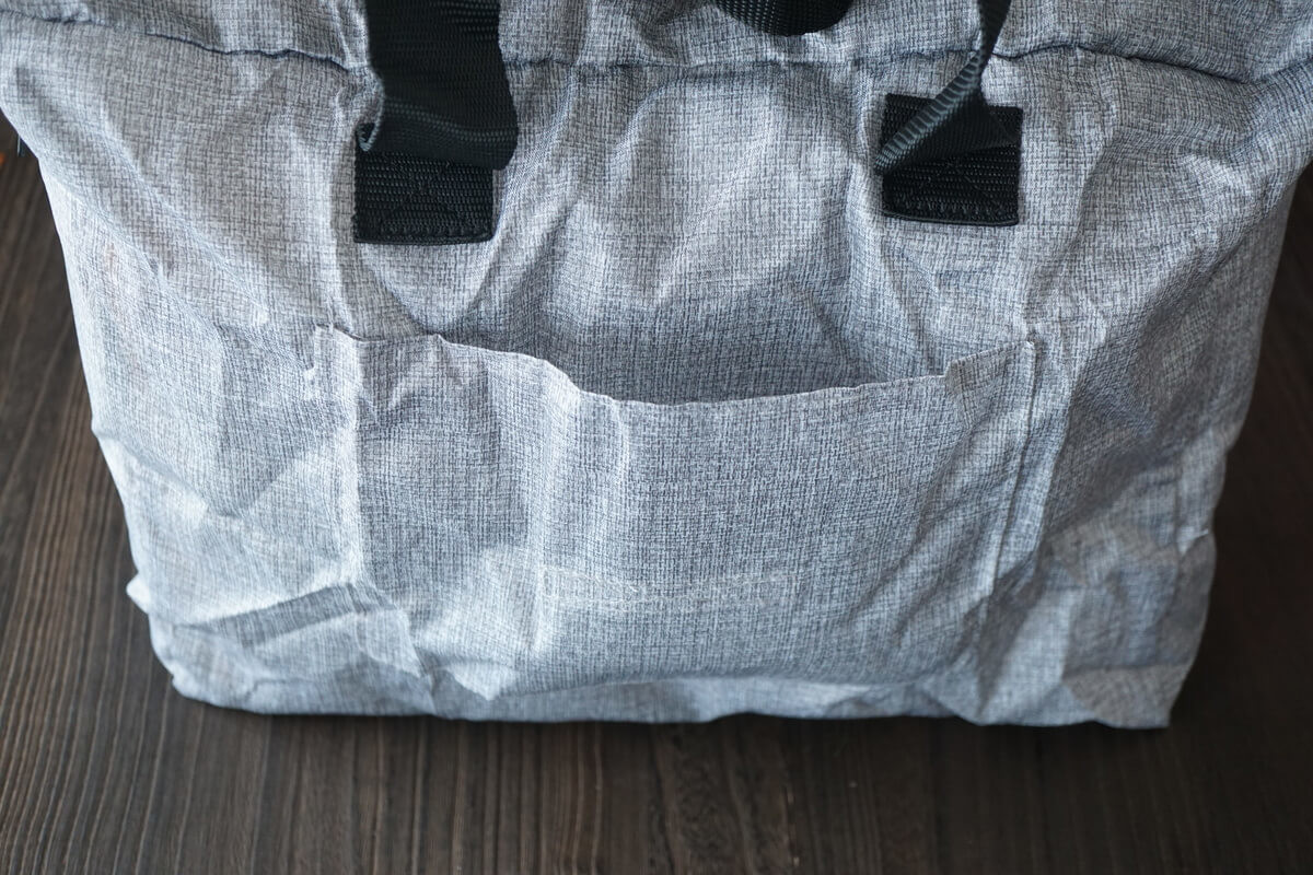 たたんだときにしまう袋はバックと一体になっているので、袋をなくす心配がありません。