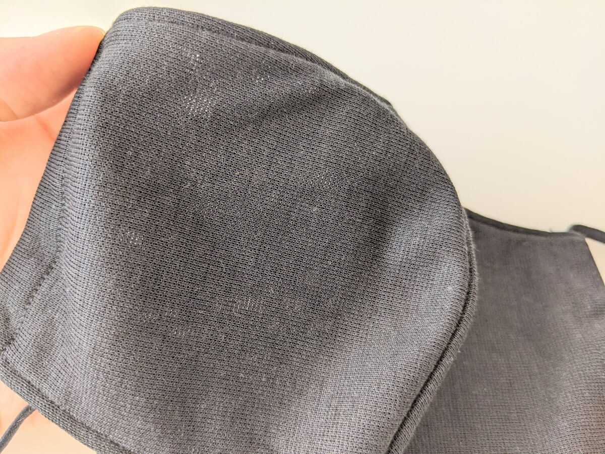 わかりにくいかもしれませんが、このように生地は光にかざすと透けます。 そのため通気性が良く、息苦しさやしゃべりにくさを感じることはほとんどありませんでした。
