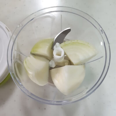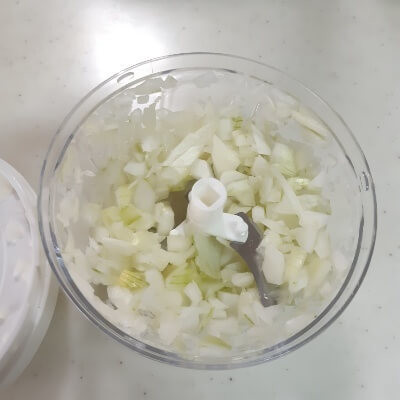 本格的なみじん切りになってますよね。野菜ハンドルカッターのメリットは少量のものみじん切りしたいときに便利なこと。