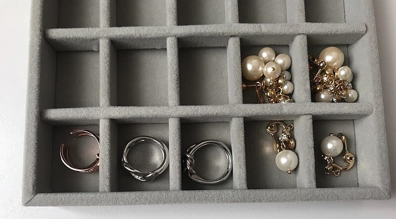 あの無印良品「ベロア内箱仕切」にそっくり!?かもしれない、ダイソー「アクセサリートレイ」3種を愛用しているので、ここでじっくりレビューしていきます。