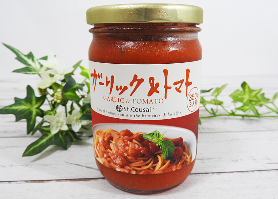 トマトと香ばしいガーリックがぎっしりとつまった久世福商店「ガーリック&トマト」350g/646円(税込)。約3人前です。646円(税込)は高い……とは思いますが、お店でパスタをいただくと1人700~800円位しますよね。それを考えると、さほど値段は高くないかもしれません。