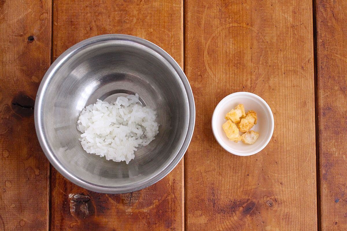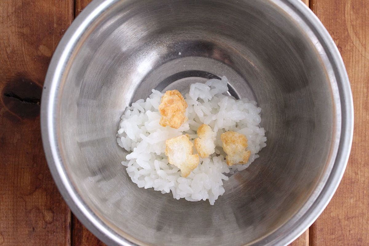 そう!ご飯に揚げ餅やあられを混ぜて、「おにぎり」にしてしまいます♪