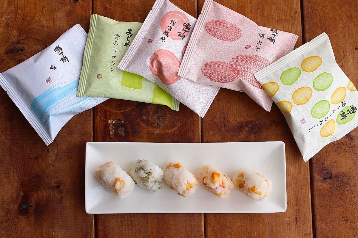 握りたては、ザクザクした食感がたまらず、時間が経ったものは、揚げ餅はしっとりしますが、味はしっかりと馴染んでいます。あられは、食感のしっかりしたふりかけ風の味に!