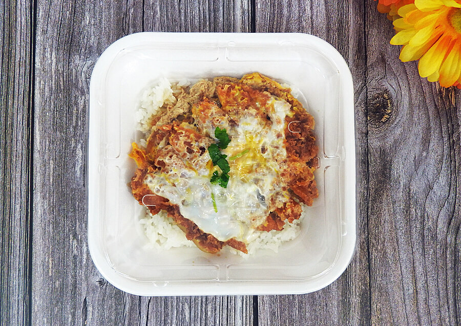 - カツ丼弁当(松)850円(税抜)・・・ロースカツ80g×2+玉子2個