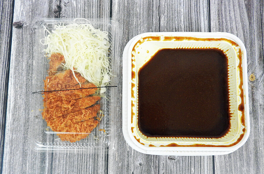 カツとカレーが別の容器に入っていますよ。慎重に持ち帰りしたつもりですが、カレーが容器上部についてしまいました……。