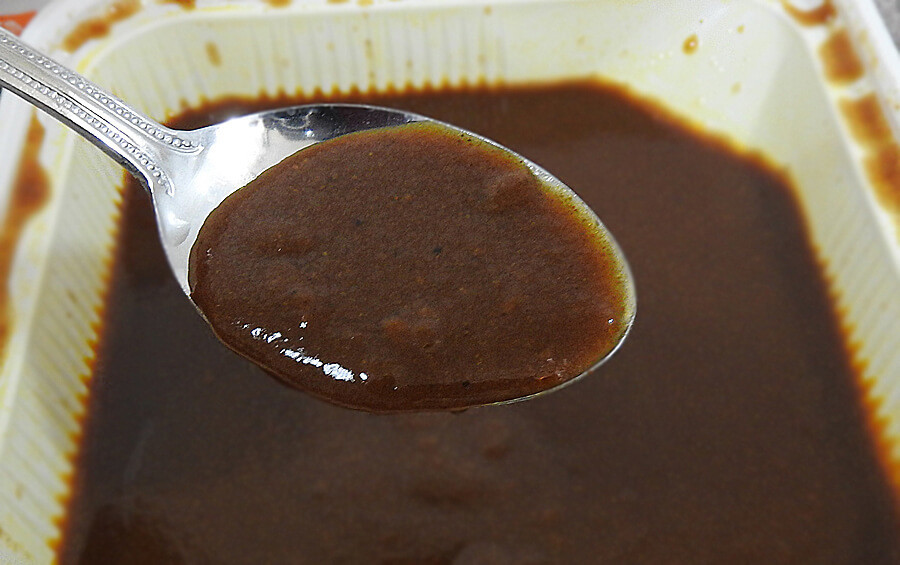 カレーはどろっとしていて、具材は入っていないタイプ。飲食チェーン店のカレーとしては辛さが強めに出ていると思います。市販のカレーで例えると中辛以上・辛口未満といったところですね。
