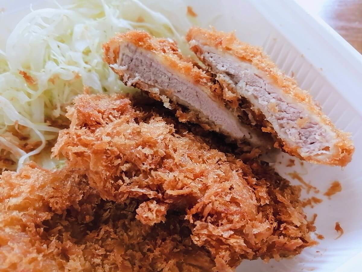 まずヒレカツ。先ほど食べたヒレカツと同じで、うすい衣がサクサクでしっとりお肉が美味しい。サイズもヒレカツ弁当に入っているサイズときっと同じ気がします。