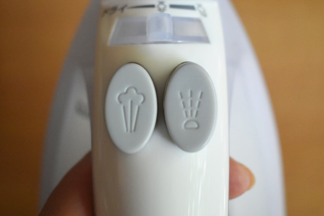 スチーム/スプレーのショットボタン(噴射できる)がついているので、しっかりスチームしたい時やドライでも水をスプレーしたいとき助かります。