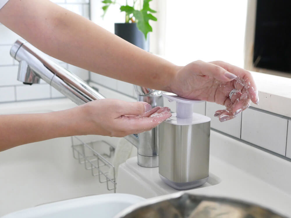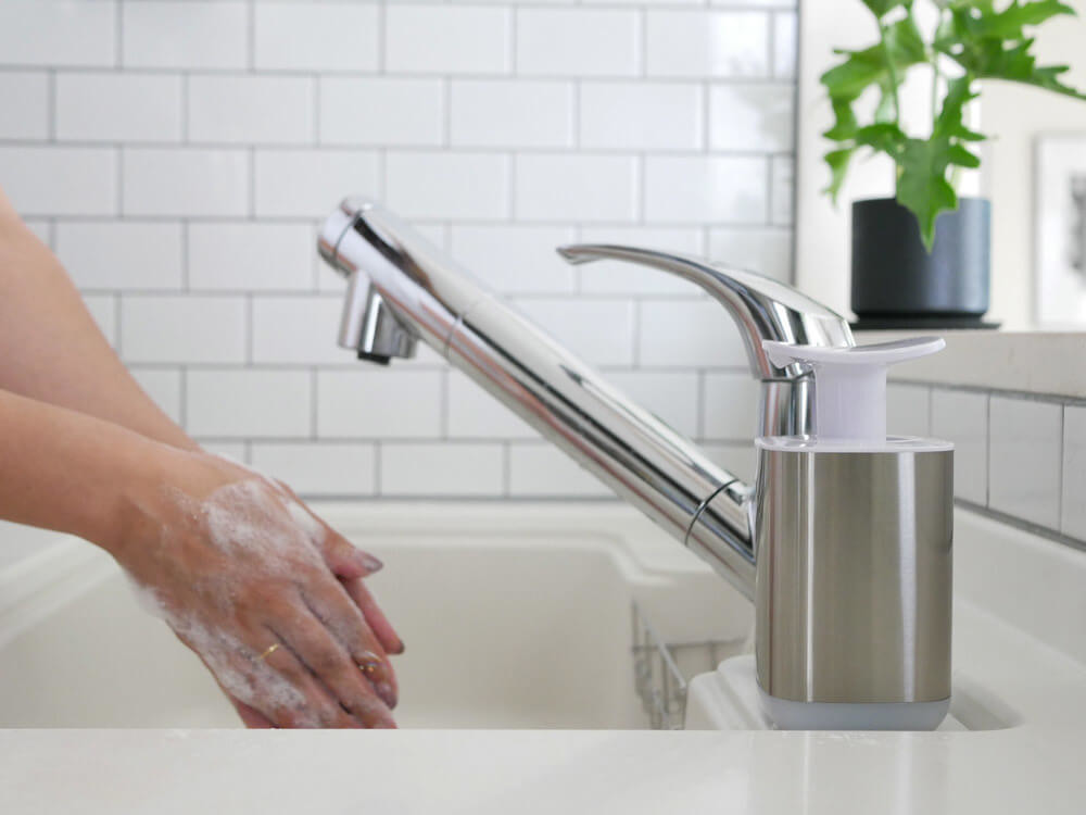 料理や掃除後など手が汚れていても、大きなポンプヘッドなので手首や腕で押せる、衛生重視な350ml液体用「JOSEPH JOSEPH」ソープディスペンサーをご紹介します。