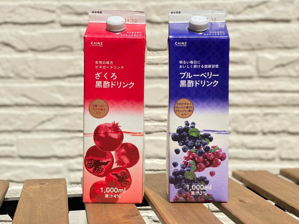 そんな時に見つけたのがこちら!カインズオリジナルの「ざくろ黒酢ドリンク」と「ブルーベリー黒酢ドリンク」でした♡