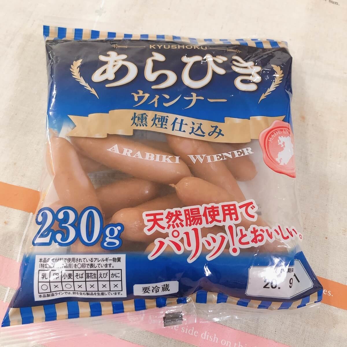 私の場合、パリッとしたあらびきウインナーで安いなと感じる目安は100gで100円以下です。その点で考えても、こちらのウインナーはぜひ買っておきたい商品の一つです。