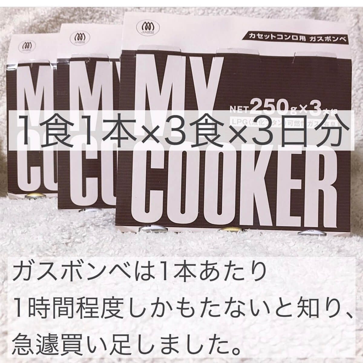 ガスボンベも追加で購入しました。ガスボンベは1本あたり1時間程度しか持たないと知り、急遽追加で購入しました。当然ですが、台風上陸の直前では在庫切れのお店が続出します。これはぜひ、日ごろから必要本数を計算し、しっかり備えてください。