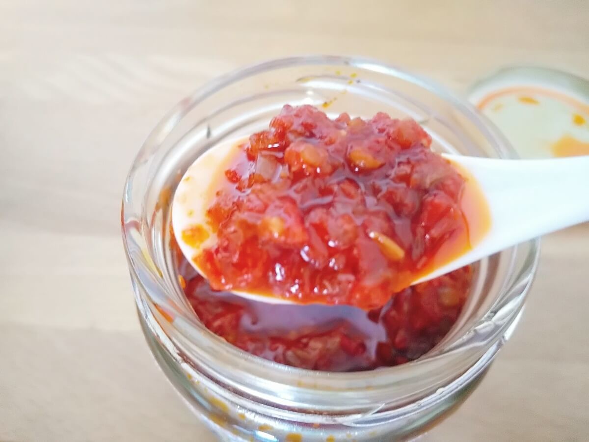 辛口な調味料ですが、スパイスのおかげか辛味よりも旨味が感じられる不思議なお味。「食べるラー油」の異国版といった感じでしょうか?