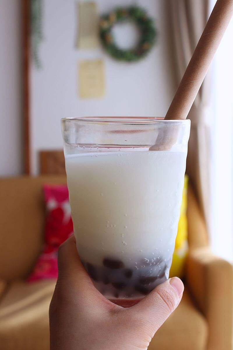透明のカップに入れないと、タピオカが見えないのですが…。ぐるぐる混ぜて、ひょこひょこ出てくるタピオカを見て、喜んでいます♡