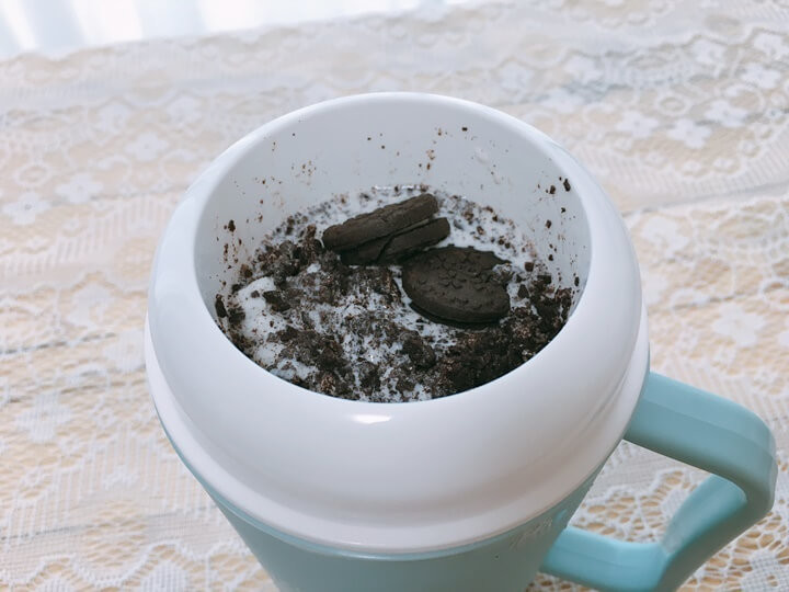 最後に試したのは牛乳+チョコクッキー。私はオレオクッキーを使用しています。クッキーは先に袋に入れて砕いておいてくださいね。