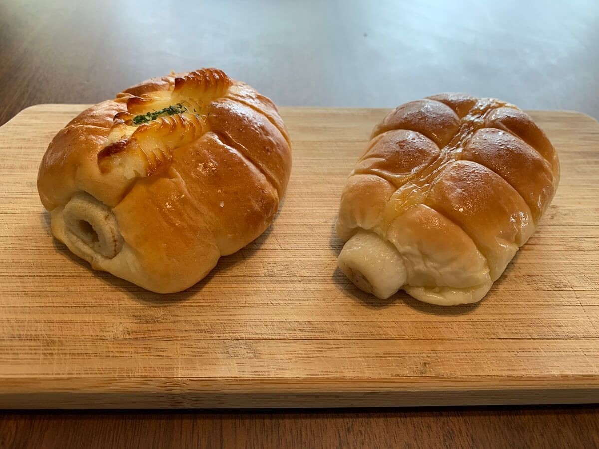 ▲左がもりもと、右がどんぐりの「ちくわパン」です
