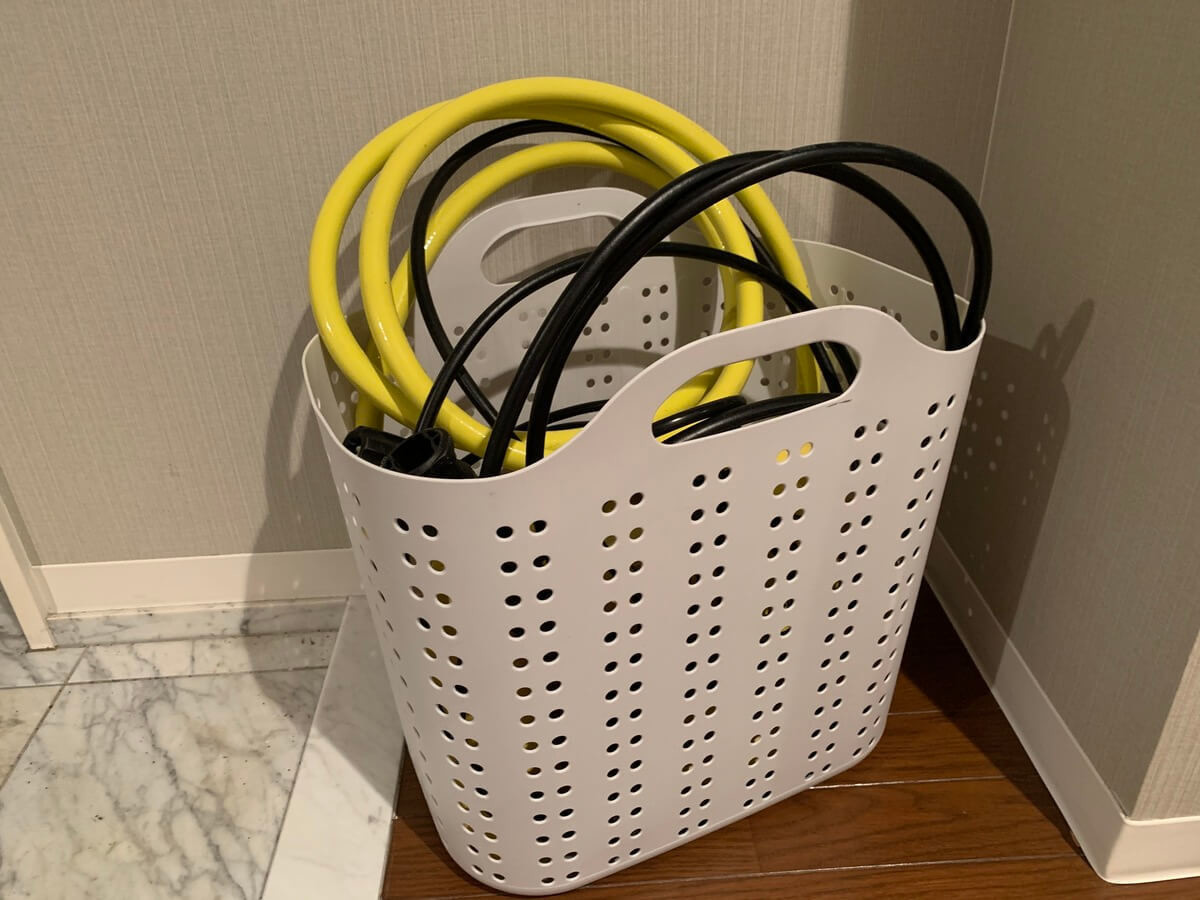 我が家で購入した一個目は、洗った洗濯物を干す場所まで持ち運ぶためのランドリーバスケットとしての用途で使用中です。そして今回二個目を購入しましたが、今回の使用用途はカー用品収納です。