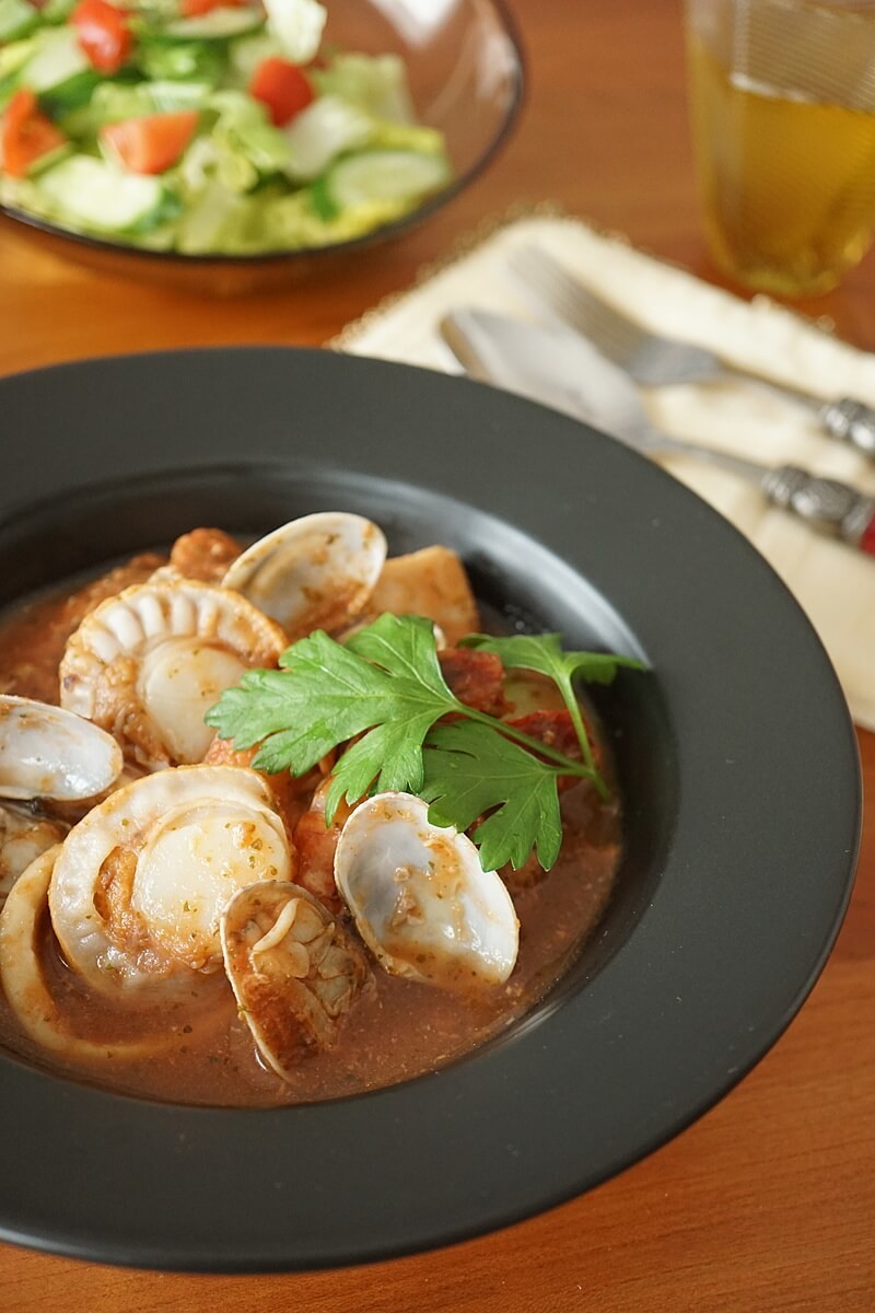 ベビーホタテをふんだんに使うことで、旨味たっぷりチョッピーノを作ることができます。