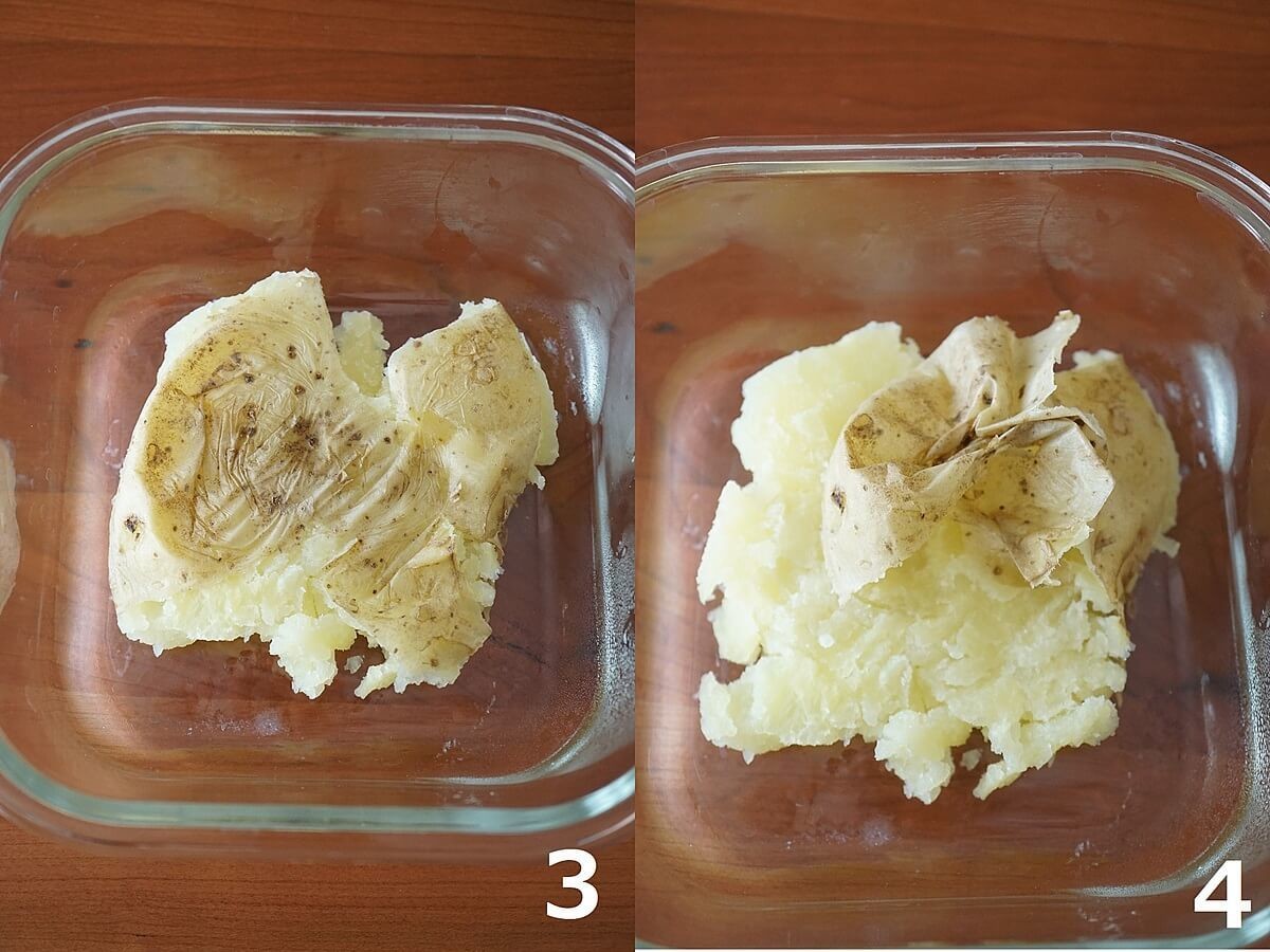 (4) 手でつまんで簡単に取れますので、マッシュポテトなどを作る際はこちらの方法がおすすめです。