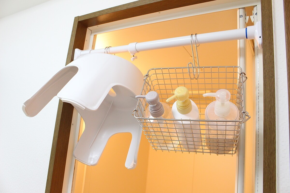 いすの水気をタオルなどでしっかり取った後、このように吊るしておくとしっかり乾かすことができます。