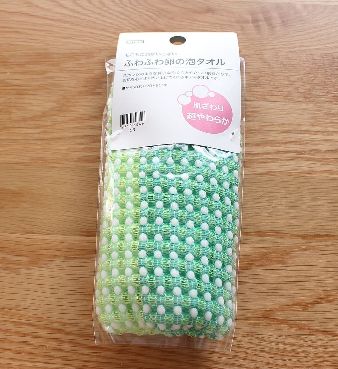 - ボディタオル(フワフワタマゴノアワ GR) 462円(税別)