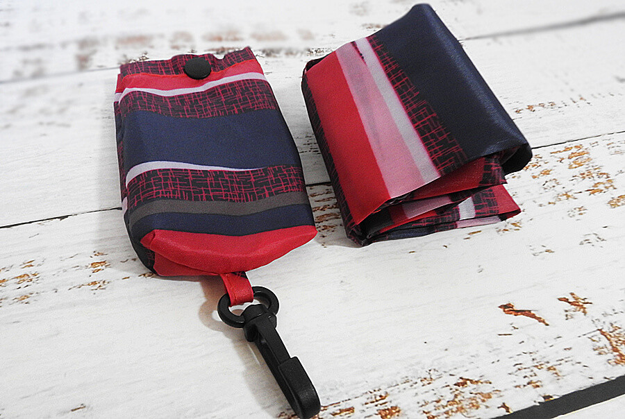 ダイソー100円エコバッグの最大の利点は、かなり小さくたためることにあると思います。エコバッグを折り畳んで専用の収納袋にいれてしまえば、収納にも困りません。