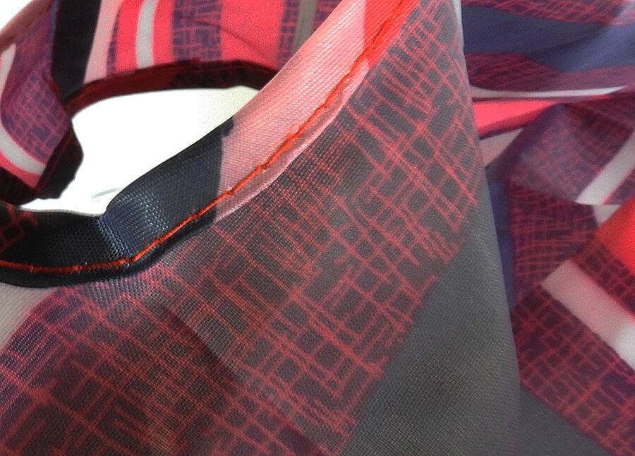 写真では判別できませんが、エコバッグの生地は結構ペラペラとしています。軽いものを持ち運びする分には問題ありませんが、重いものを運ぶとヘタるのが早いかもしれません。