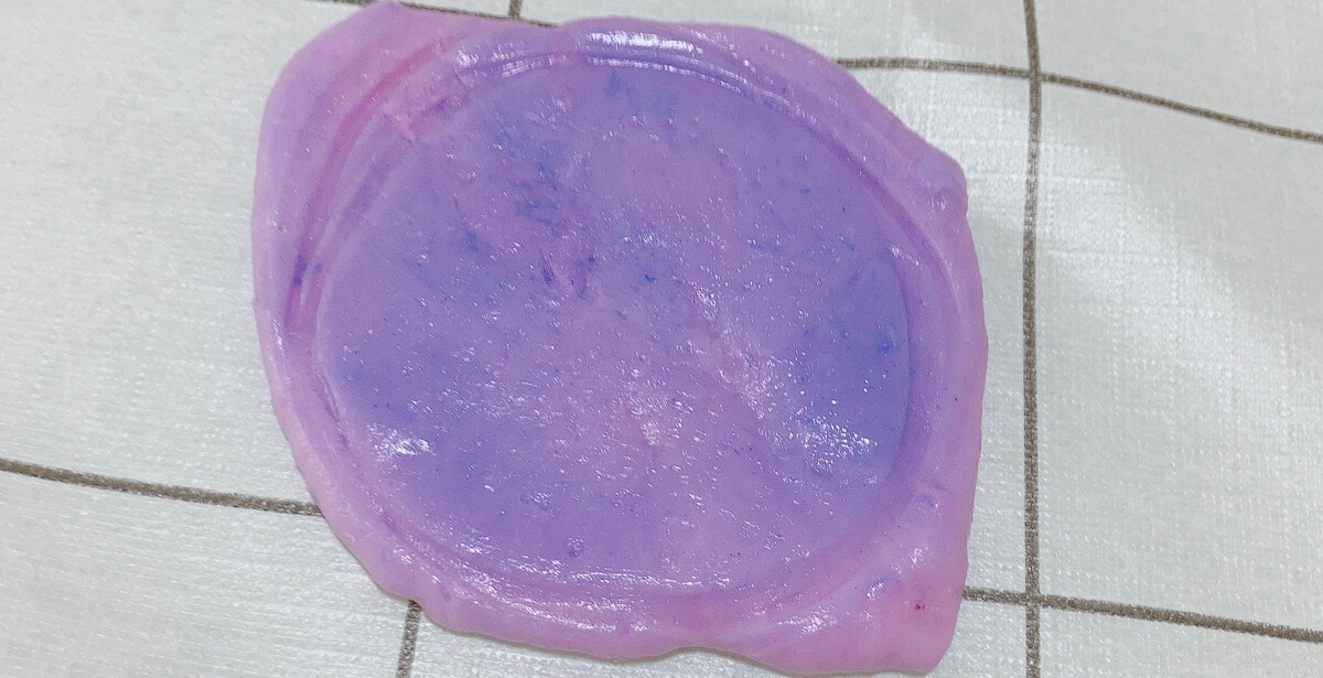 こんなふうに紫色に変わるんです! 何回も繰り返し色を変えることができるので、子どもは冷やしたり温めたりして色の変化を楽しんでいましたよ。