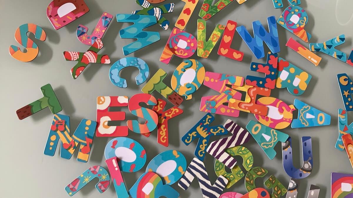 アルファベットマグネットは、例えば「D」ならドーナッツの頭文字なのでドーナッツのデザイン、「R」はレインボーで虹のデザインなど子どもが覚えやすいように工夫が凝らされています。