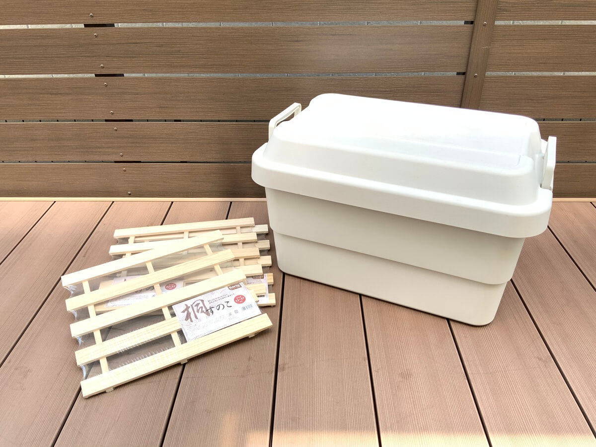無印良品「ポリプロピレン頑丈収納ボックス」とセリア「すのこ」を準備