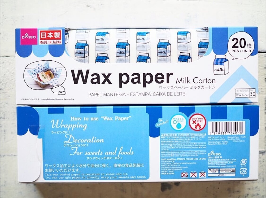 ▲ダイソー「ワックスペーパー ミルクカートン 20枚入り」 各100円(税抜)