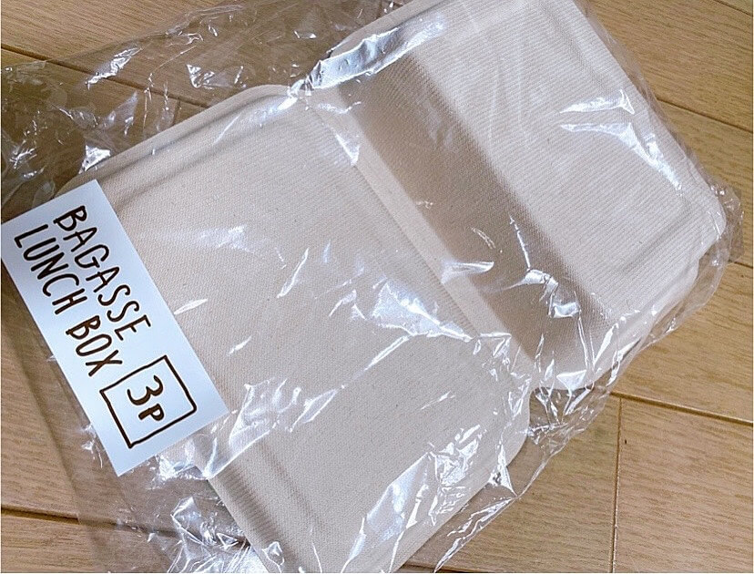 こちらは、やっと買えた長方形タイプですが、正方形や、大きなサイズもあります。 SNSで、「おしゃピク」や「オシャピク」と検索すると必ずこのバガスランチBOXが出てきますよ。セリアに売ってるという情報で話題になった商品です。
