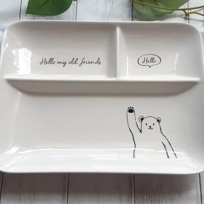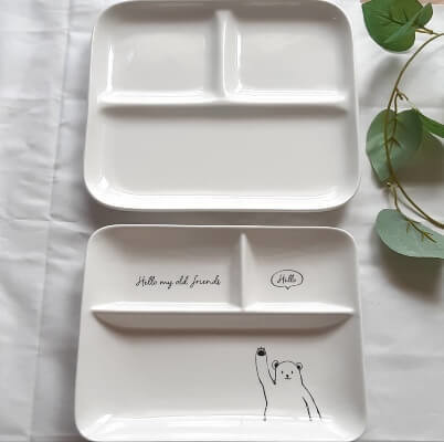 ダイソーのワンプレート皿にはかわいい絵柄がついています。