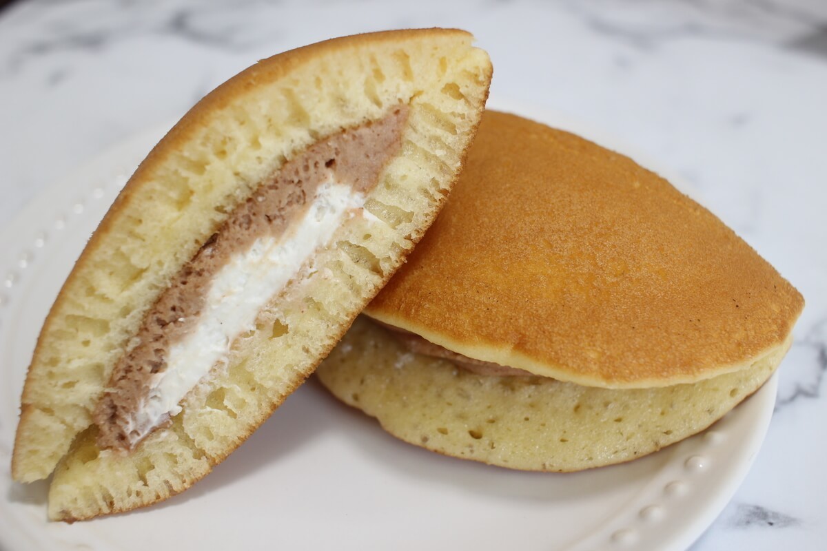 マロンクリームとホイップクリームが挟まっているどら焼きです。