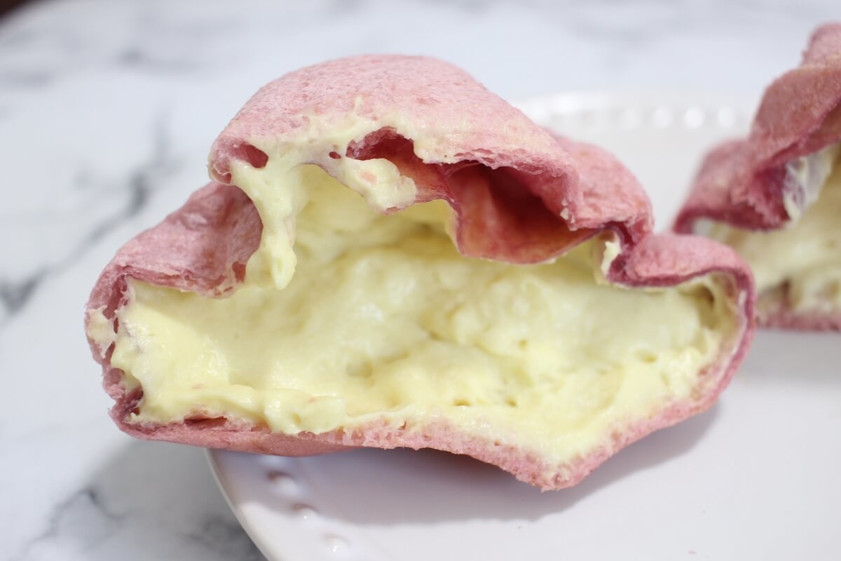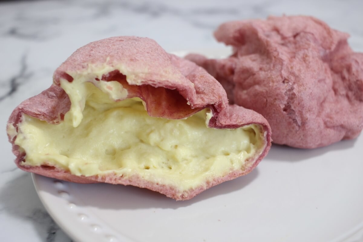 食べてみると、シュー生地がもっちりと噛み応えがあり、しっかりと噛まないとちぎれないほど!