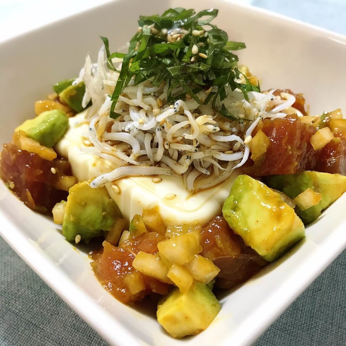 2.Wたんぱくで筋肉を育てる!まぐろとしらすのパワー豆腐丼