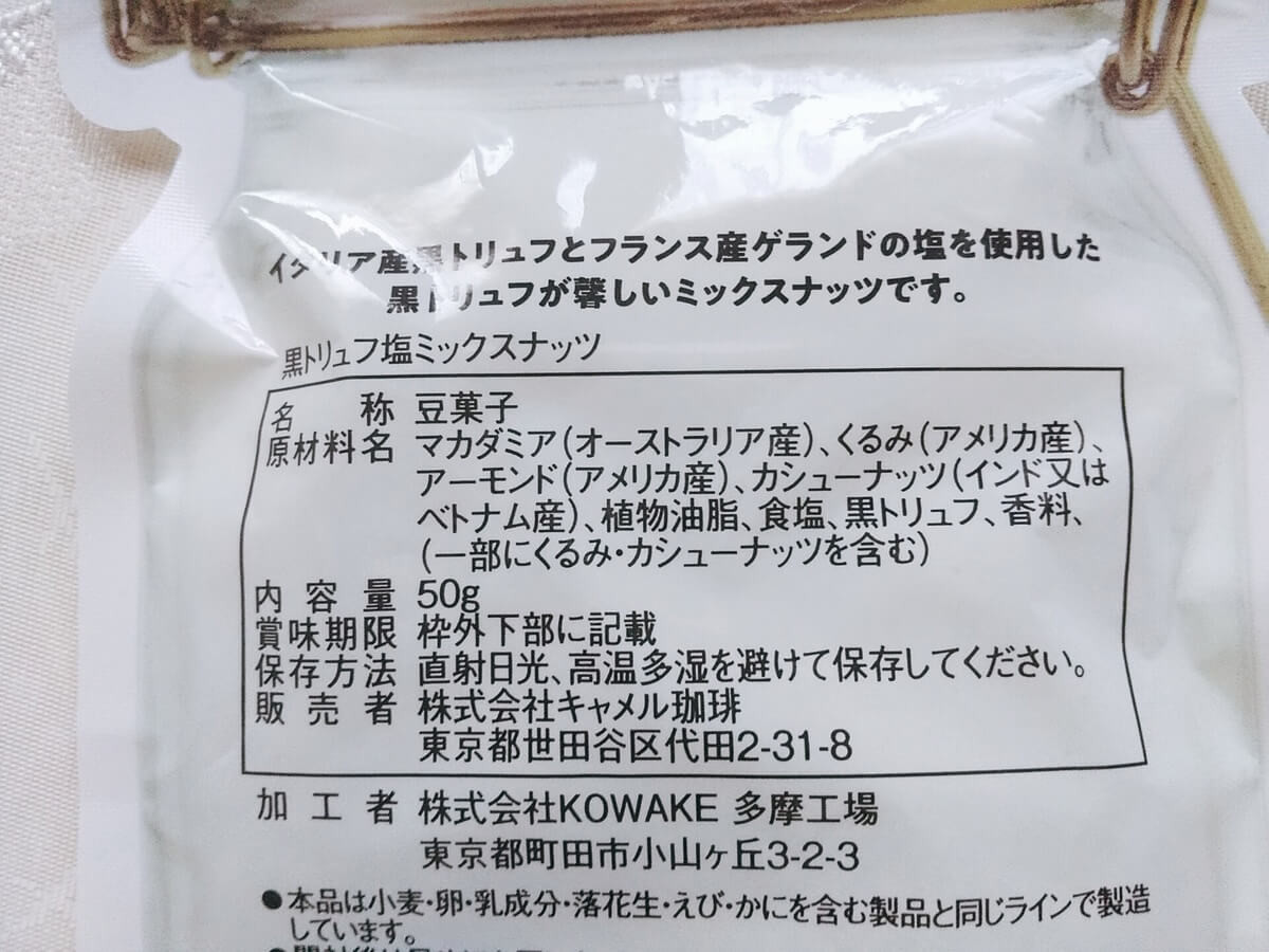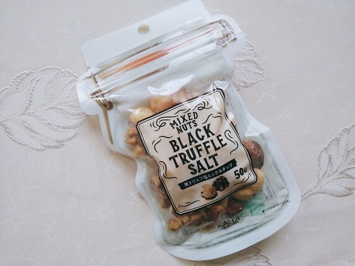 高級食材、トリュフを使用したミックスナッツです。トリュフなんてそうそう食べられない庶民な私は、見た瞬間に食いつきました!