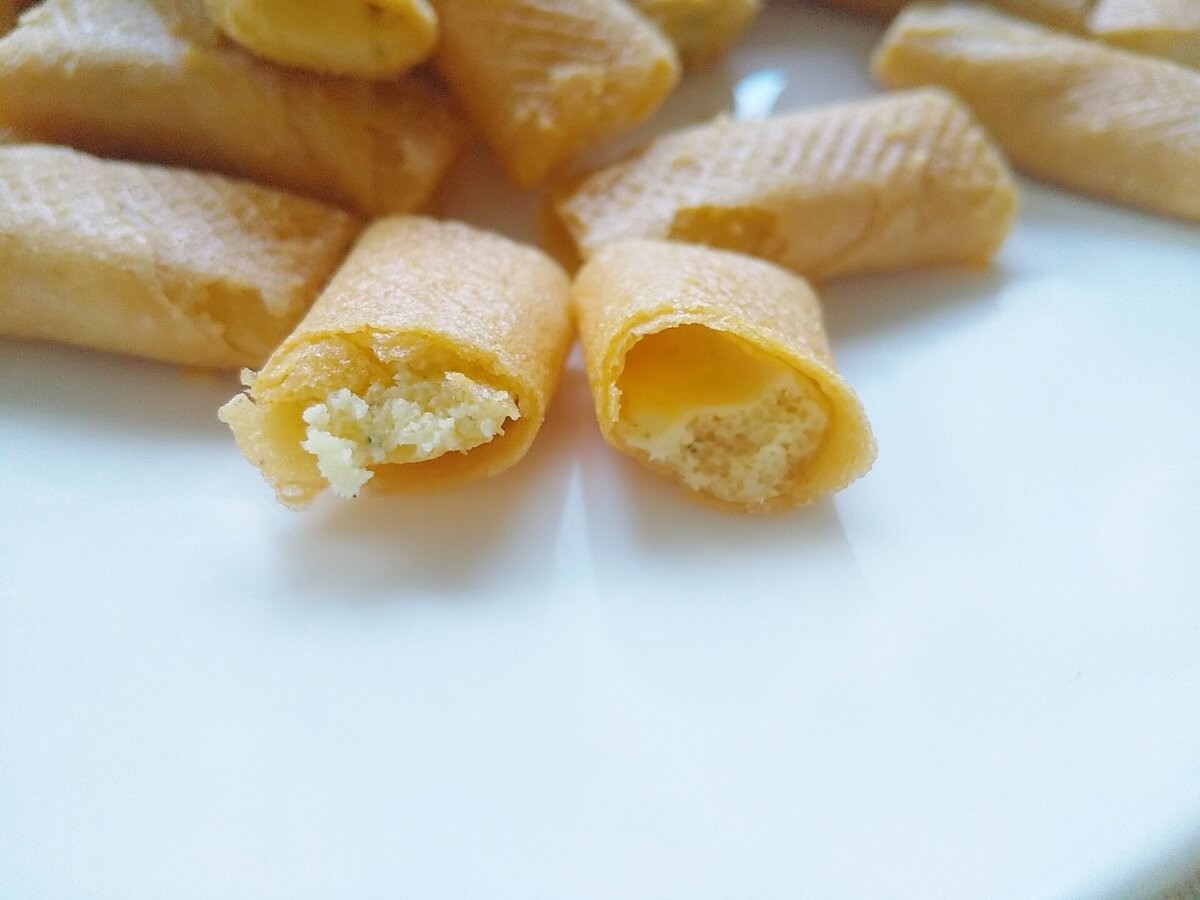 外側は、サクサクッとした薄いクレープ。軽い感触のクレープの中にはガーリック香るチーズフィリングが詰め込まれています。