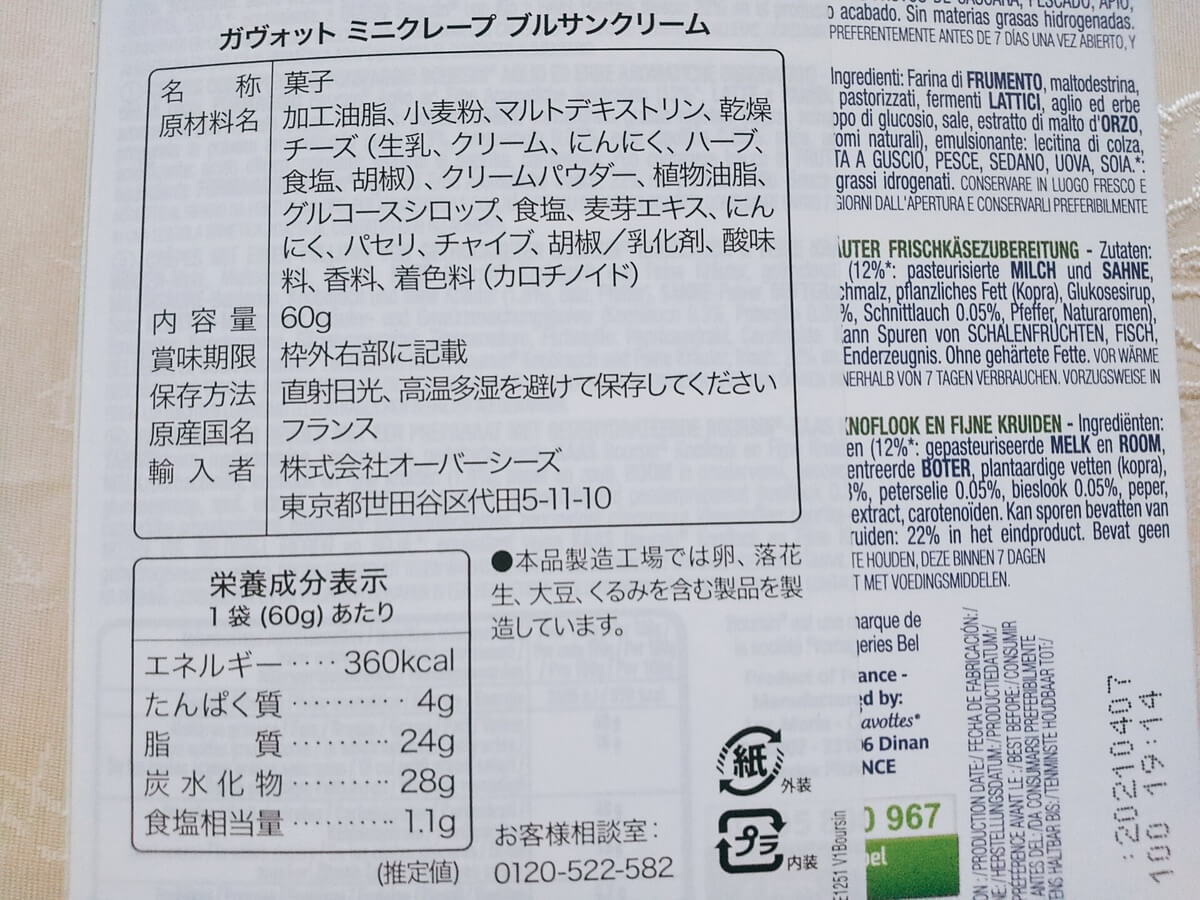 - 商品名:ガヴォット ミニクレープ ブルサンクリーム