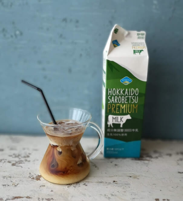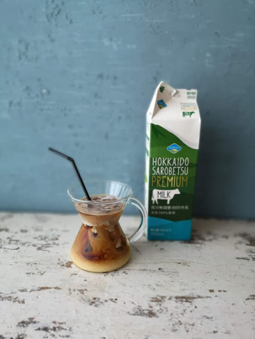 少し濃い目にコーヒーを淹れて、特選牛乳を合わせると、とっても濃厚で味わい深いカフェオレが楽しめます。