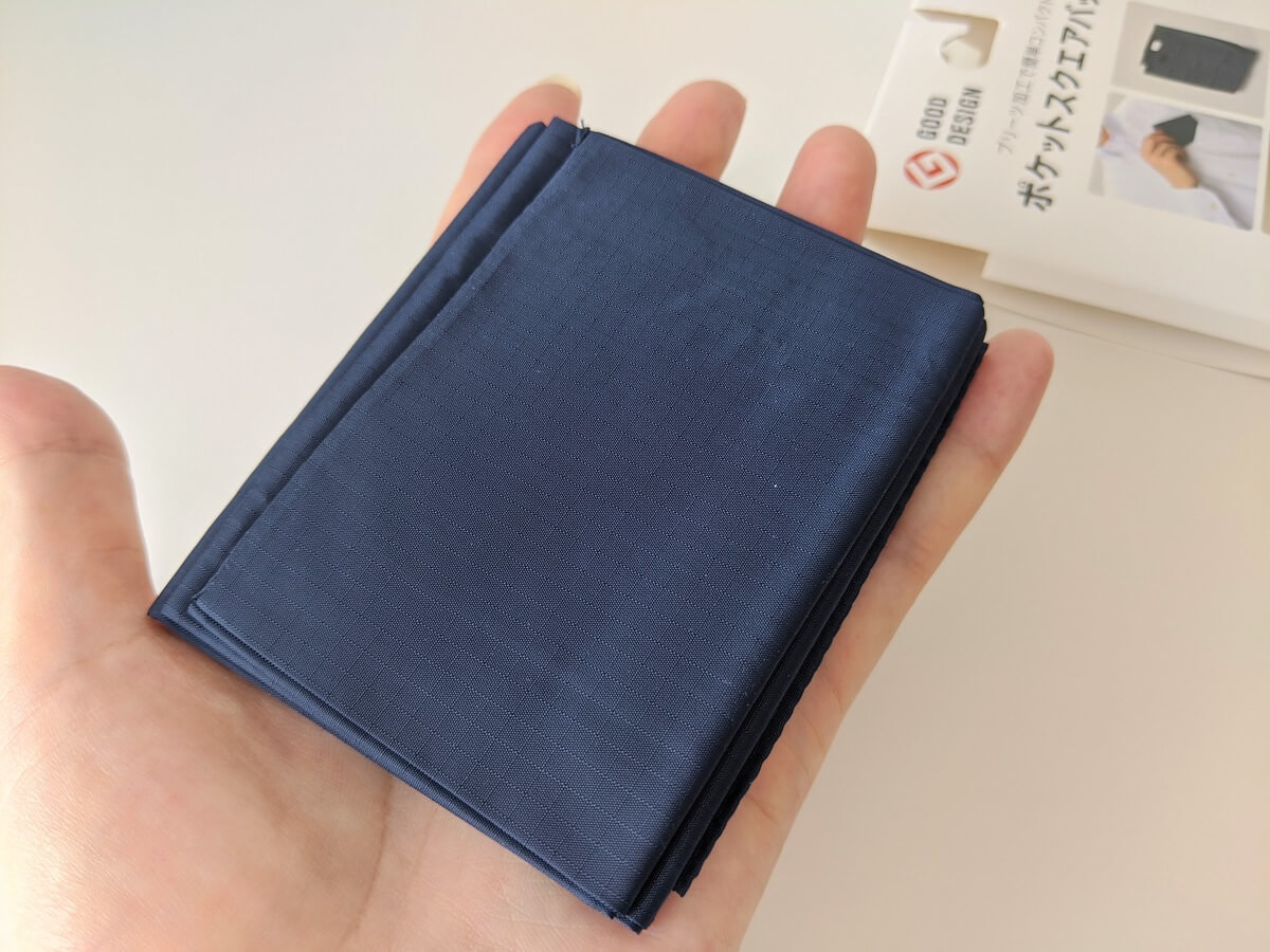 素材はポリエステルで、リップストップというツルツルした生地を使用しています。 またプリーツ加工といって折り目がつけられているため、折り目の通りにたたむと誰でも簡単に折りたためます。