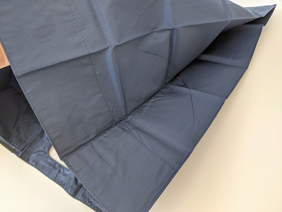 他はプリーツ加工のおかげで折りたたむのは簡単ですし、生地もしっかりしていて頼りなさもありません。 重い物を入れなければ問題なく使えるので、ぜひみなさんも試してみてくださいね。