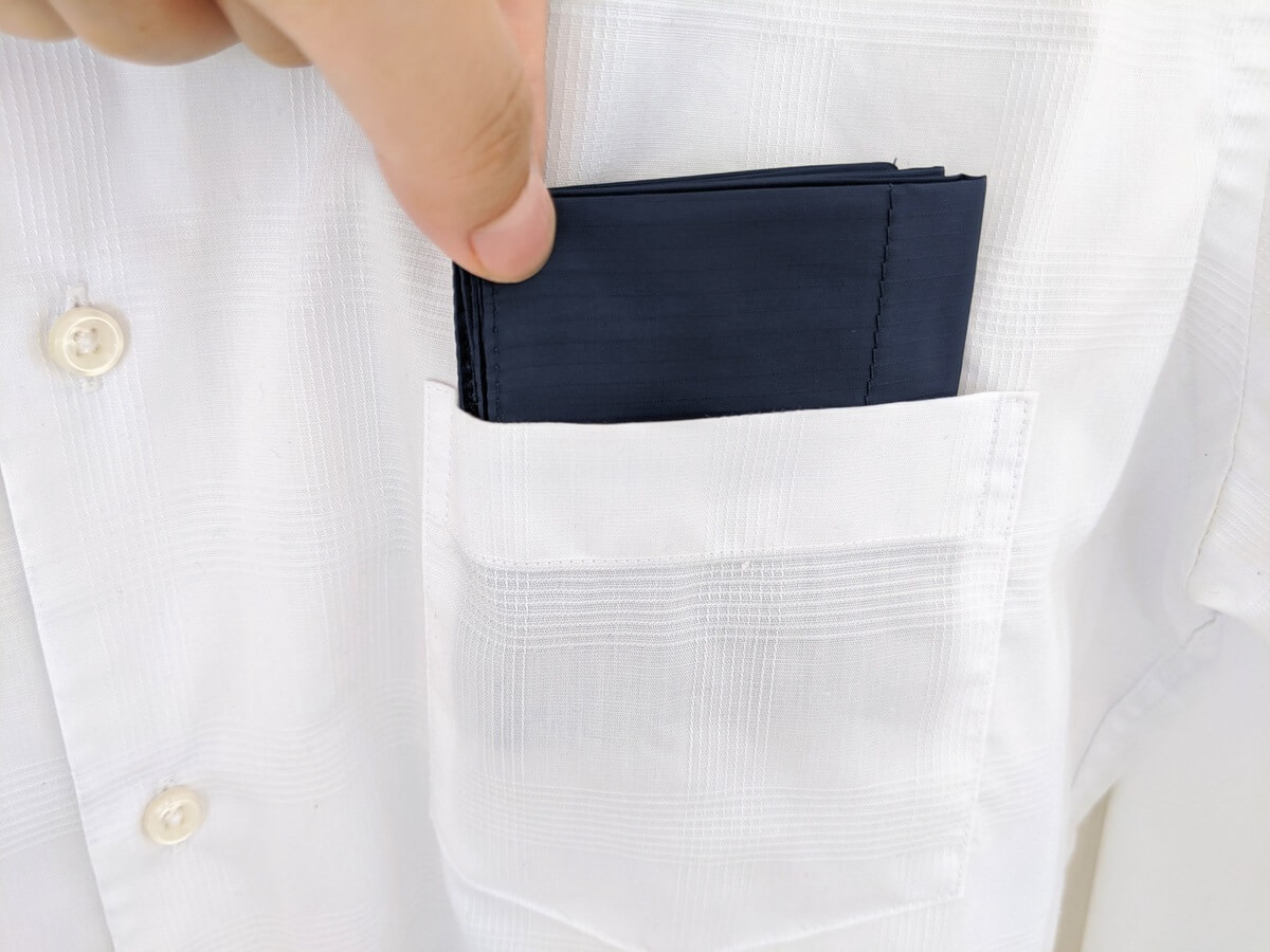 折りたたんだ状態だと大きさはほぼカードサイズ。 薄いのでシャツのポケットにもすっぽり入ります。