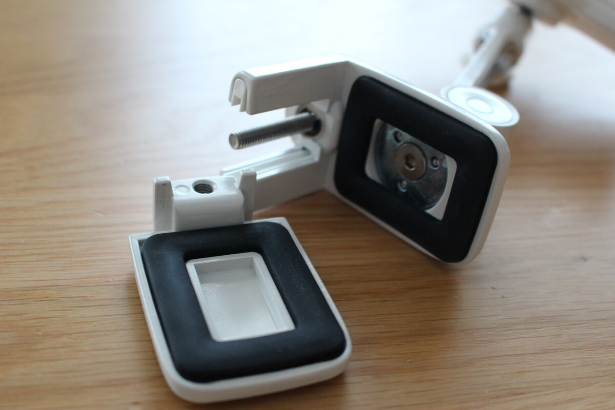 クッションがついているので、傷をつけることなくしっかり挟み込むことができます。
