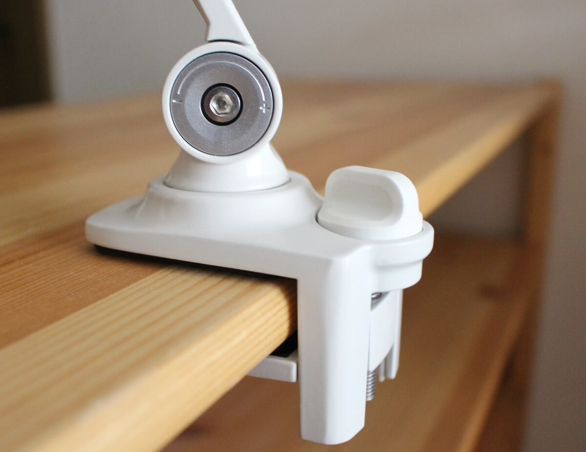 厚み10mmから38mmまでの机などに簡単に取り付けることができます。
