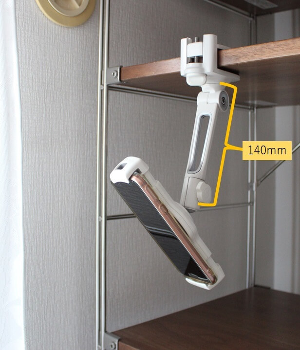 こちらのスマホホルダーをキッチンに設置して、夕飯のレシピを見たり、ちょっとした隙間時間にスマホで作業したりしています。見やすい角度にできるので、スマホを直置きするよりも便利です。