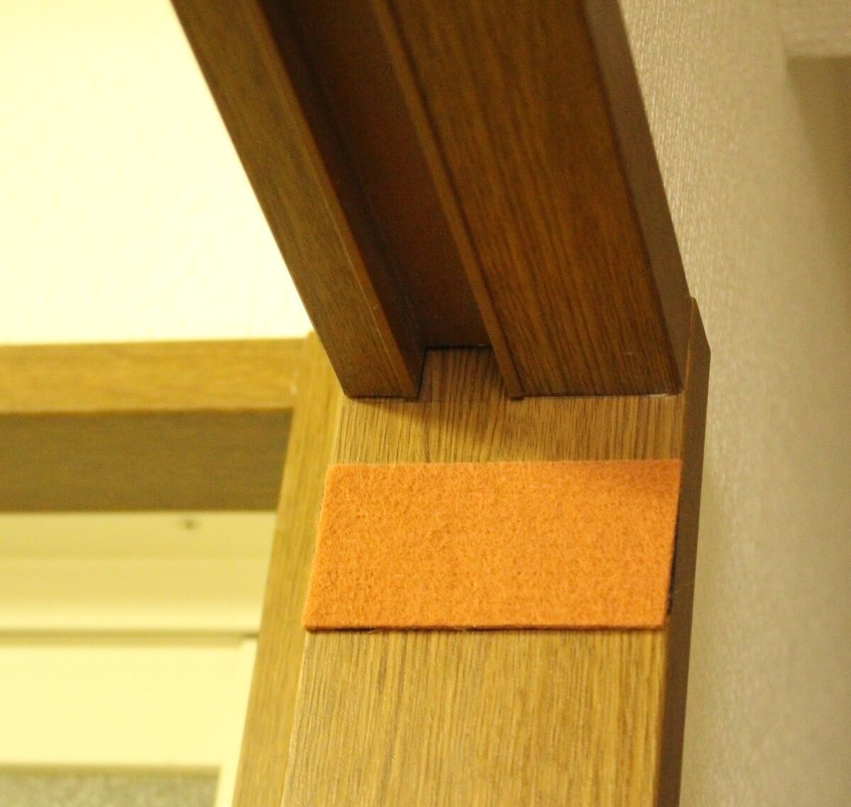 そこでマスキングテープで建具を保護した上で、先ほどの余ったフェルトテープを貼ってみたところ……あら!ぴったりです。
