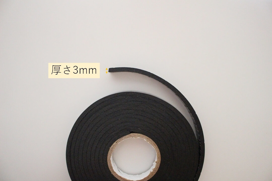 セリアにはたくさんの種類のすきまテープがありますが、こちらはドア・戸専用のテープです。 専用というだけあって厚さおよそ3mmという薄さ。