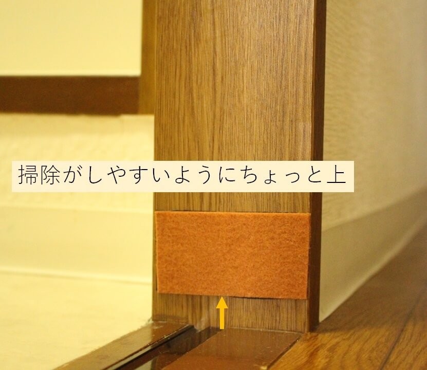 またレールのお掃除がしやすいように、ちょっとだけ浮かす!掃除のしやすさは私にとってはかなり重要です。