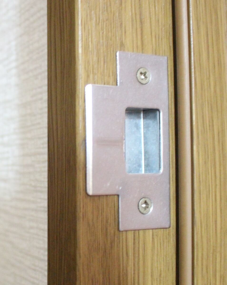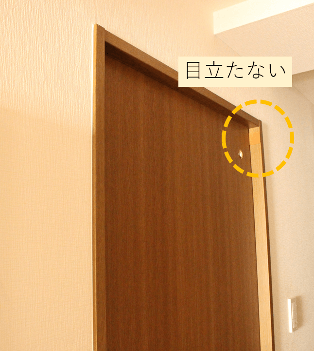 ドアの種類にもよりますが、こちらの受け皿付近は避けるように貼り付けます。 ドアの開閉を確認しながら、テープの位置・長さを調節してみてくださいね。